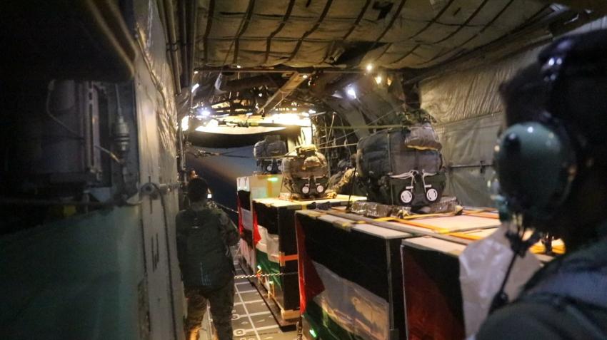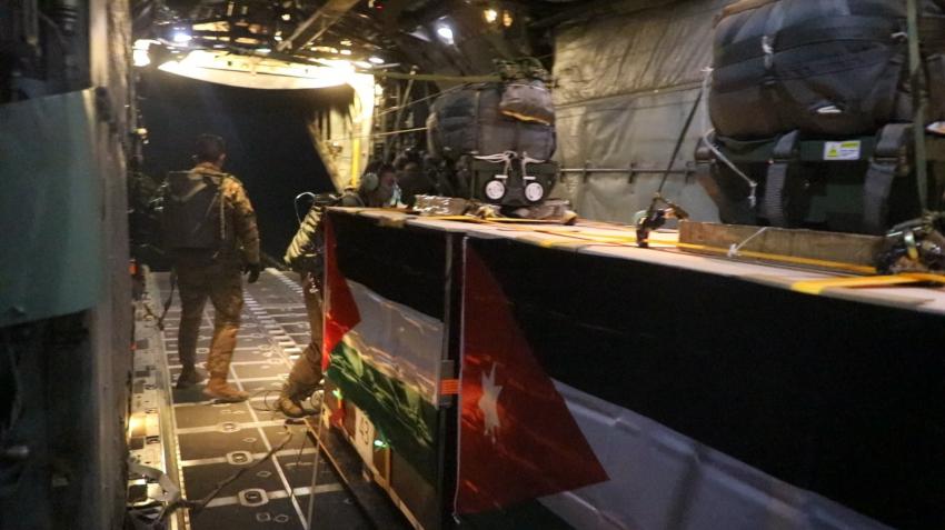 Ammon News - Upon the directives, a Royal Jordanian Air Force (RJAF) plane on Wednesday airdropped urgent medical aid for the 12th time, this time to the Jordanian Field Hospital (Gaza /77).
