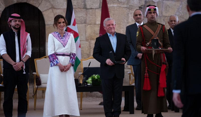 During the meeting with Aqaba figures, His Majesty bestowed the Silver Jubilee Medal on individuals and institutions in Aqaba, in recognition of their contributions to serving Jordan, especially the local community in the governorate.