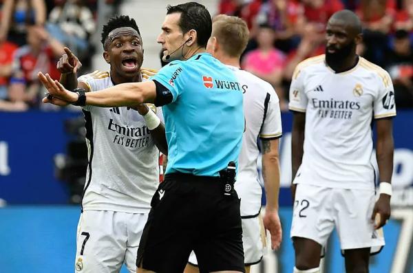 In a statement, Real condemned the 41-year-old referee, saying: "After the serious insults uttered, once again, against our player Vinicius Junior, in this case during the last league match played by our team at El Sadar (Osasuna home stadium), Real Madrid CF communicates the following.