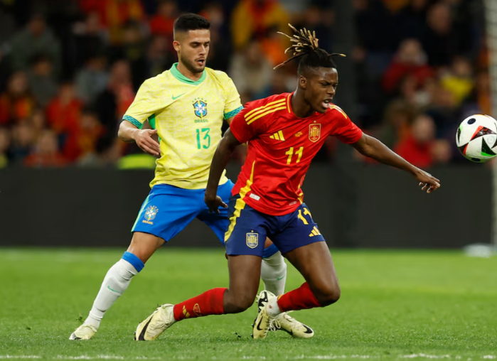Spain captain Rodri stroked home from the spot to put the hosts in front and Dani Olmo extended their lead in the 36th minute, nutmegging two Brazilian defenders before firing into the top corner.
