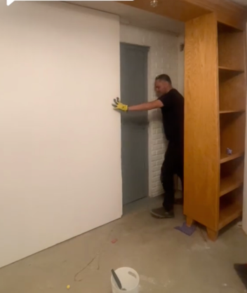 The secret room was discovered when the couple was removing carpet in their basement, only to discover the “sliding drywall pocket door.”
