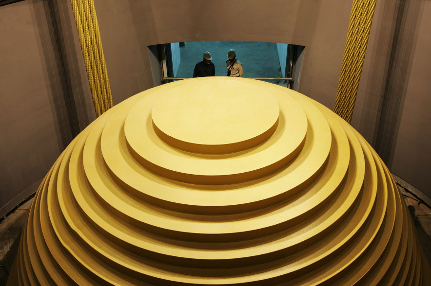 High within the tower, however, another technological innovation helps protect the 101-story skyscraper — a huge orb-like device known as a tuned mass damper.