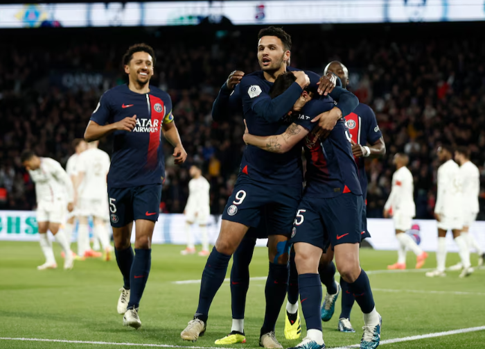 Ammon News - Paris St Germain continued their march towards the Ligue 1 title with a 4-1 win at home against Olympique Lyonnais on Sunday with all the goals coming in an explosive first half.