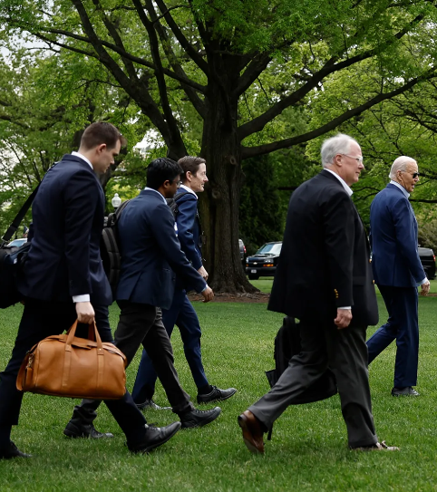 White House staffers and reporters alike noticed the sudden change in Biden's walk routine beginning in mid-April, after more than three years in which he'd typically walked solo.