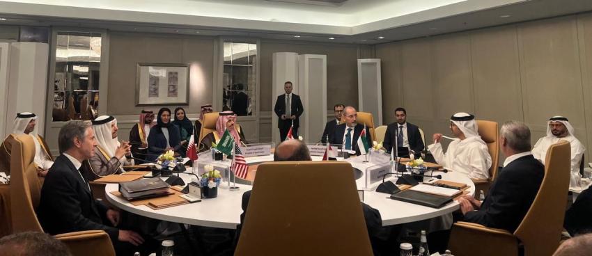 Ammon News - Deputy Prime Minister and Minister of Foreign Affairs and Expatriates, Ayman Safadi, Minister of Foreign Affairs of Qatar, Sheikh Mohammed bin Abdulrahman Al Thani, Saudi Foreign Minister, His Highness Prince Faisal bin Farhan Al Saud, UAE Foreign Minister, Sheikh Abdullah bin Zayed, and Egyptian Foreign Minister, Sameh Shoukry, will hold a meeting and Secretary of the Executive Committee of the Palestine Liberation Organization, Minister of Civil Affairs Hussein Al-Sheikh, hold a meeting with U.S. Secretary of State Anthony Blinken.