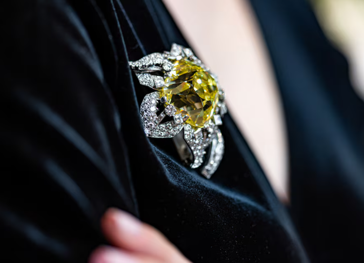 Ammon News - A golden-hued diamond brooch, similar to one worn by the late Queen Elizabeth, is expected to be sold for around $6 million at a Sotheby's auction in Geneva this week.