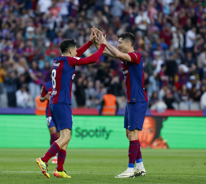Pedri scored twice and Robert Lewandowski once for Barcelona, which kept a four-point gap to Catalan rival Girona with a round to go. Girona won 3-1 at Valencia for its first-ever third place finish in the Spanish league. It had already clinched a Champions League place in advance.