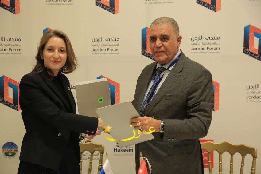 The agreement was signed by Ammon’s Publisher, Sameer Al-Hyari, and RT Arabic’s Director, Maya Manna, on the sidelines of the Jordan Forum for Media and Digital Communication. The program focuses on regional and international news coverage, media support, mutual benefit, and the exchange of contact information for services, experiences, visits, and information between the two organizations.