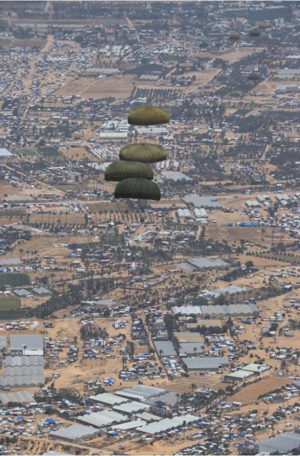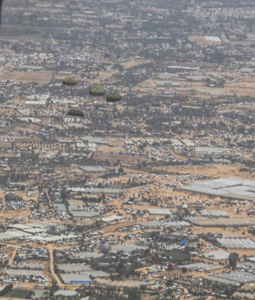 Ammon News - The Jordanian Armed Forces - the Arab Army (JAF) carried out on Tuesday 3 humanitarian aid airdrops, targeting a number of sites in the southern Gaza Strip.