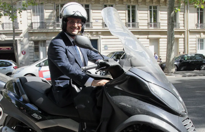 The vehicle, billed as the “love scooter”, played a central role in the political crisis of January 2014 when, two years into his five-year presidential mandate, a paparazzi photographer captured Hollande riding it to make late-night visits to the actor Julie Gayet.
