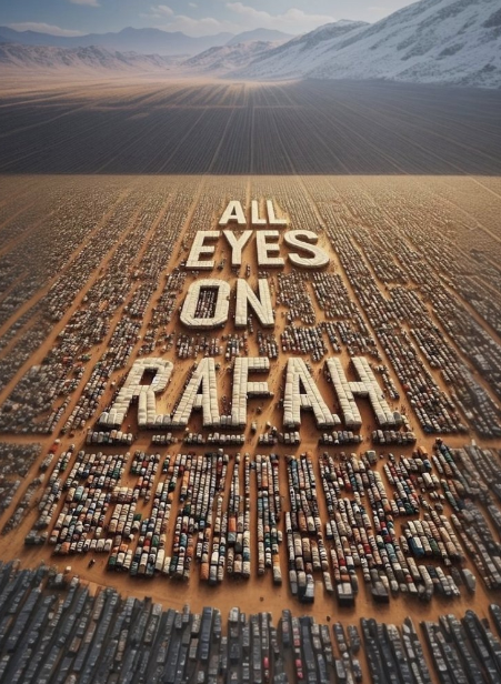 “All eyes on Rafah” is an artificial intelligence (AI) generated image with a slogan calling attention to the situation in Rafah, the southernmost city in the Gaza Strip near the border with Egypt.