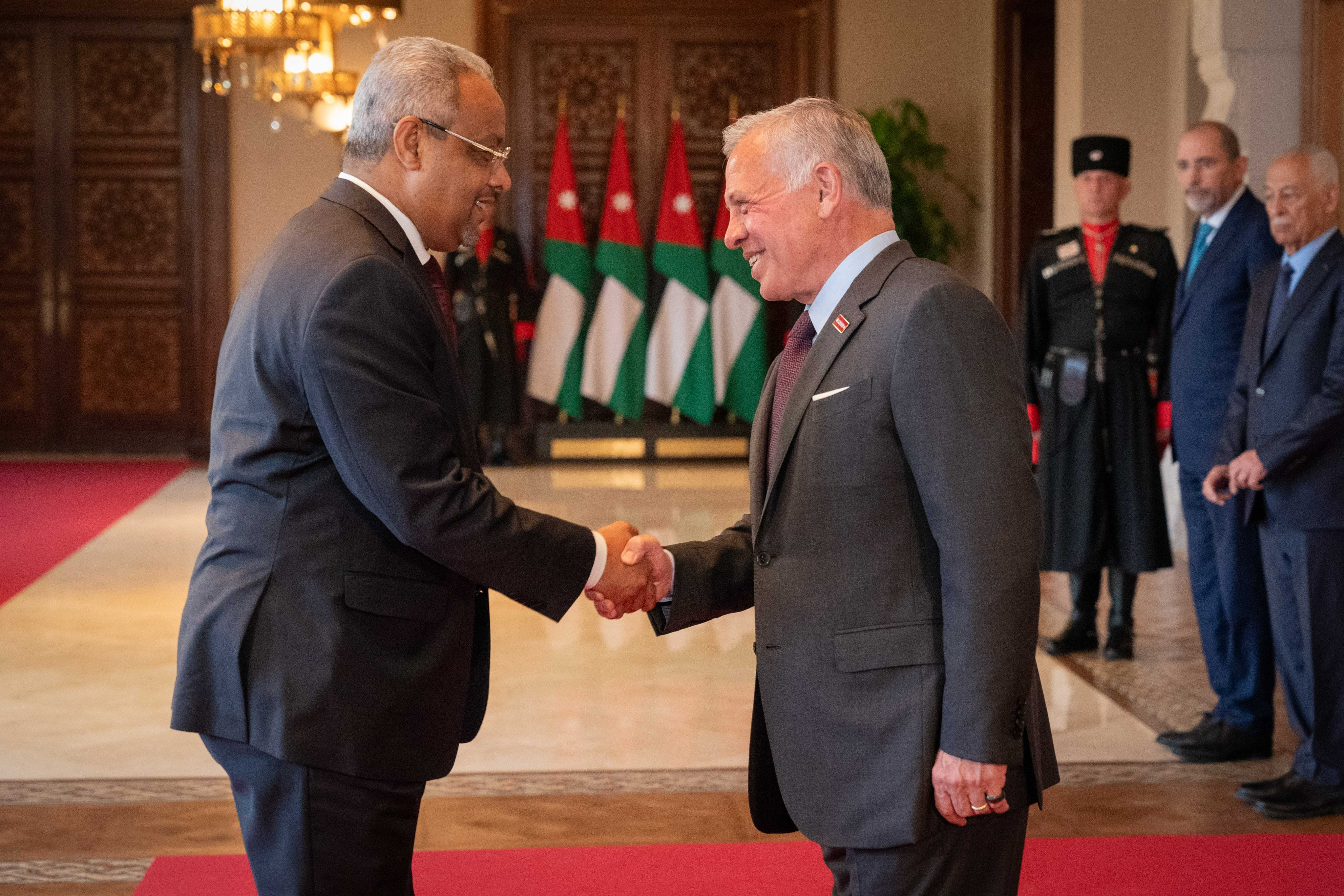 His Majesty accepted the credentials of ambassadors Sheikh Khalifa Abdulla Hamad Al Khalifa of Bahrain and Arno Ahornegger of the Sovereign Order of Malta.