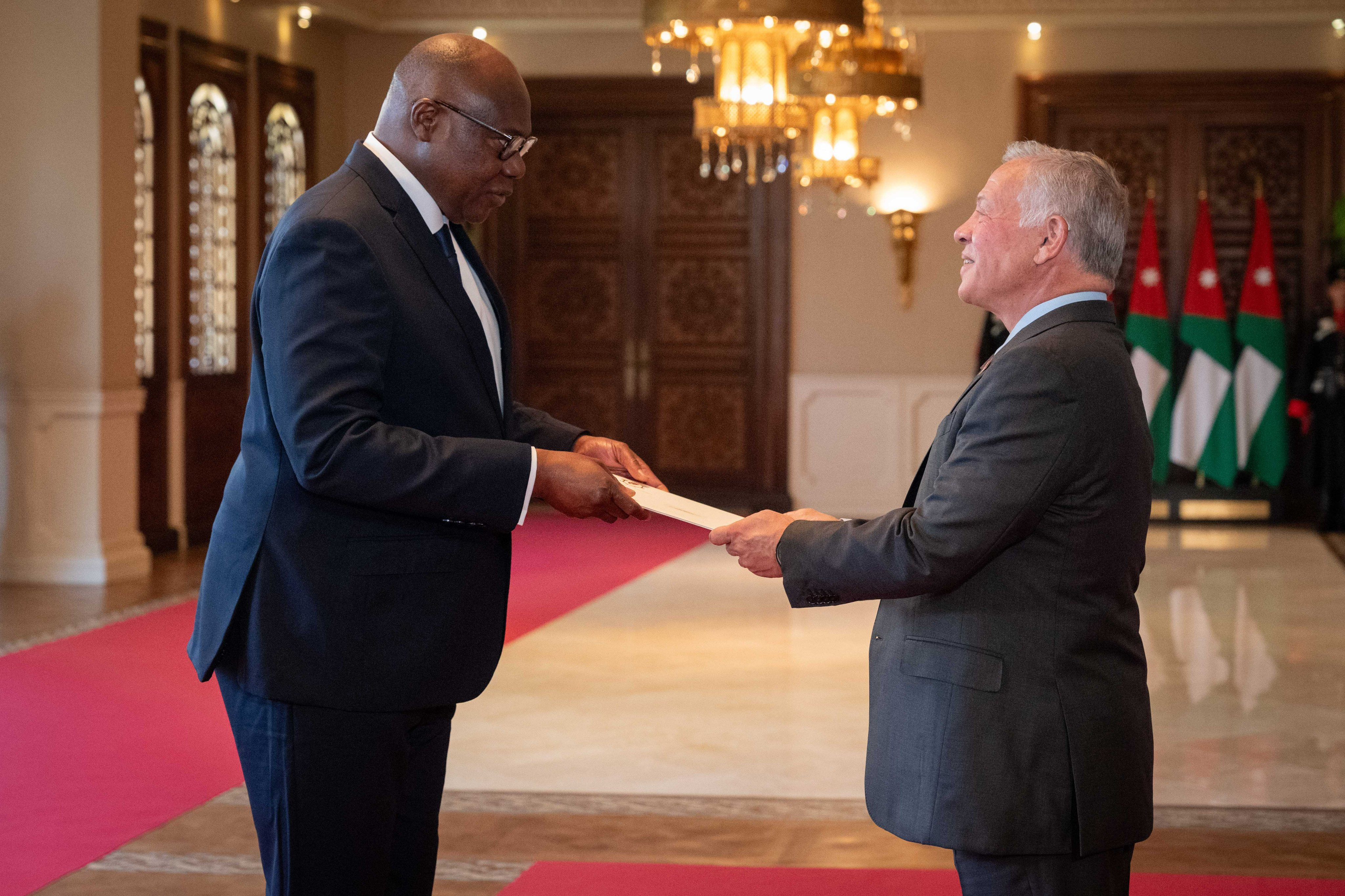 Ammon News - His Majesty King Abdullah II on Sunday accepted the credentials of newly appointed ambassadors to Jordan, during a ceremony at Basman Palace.