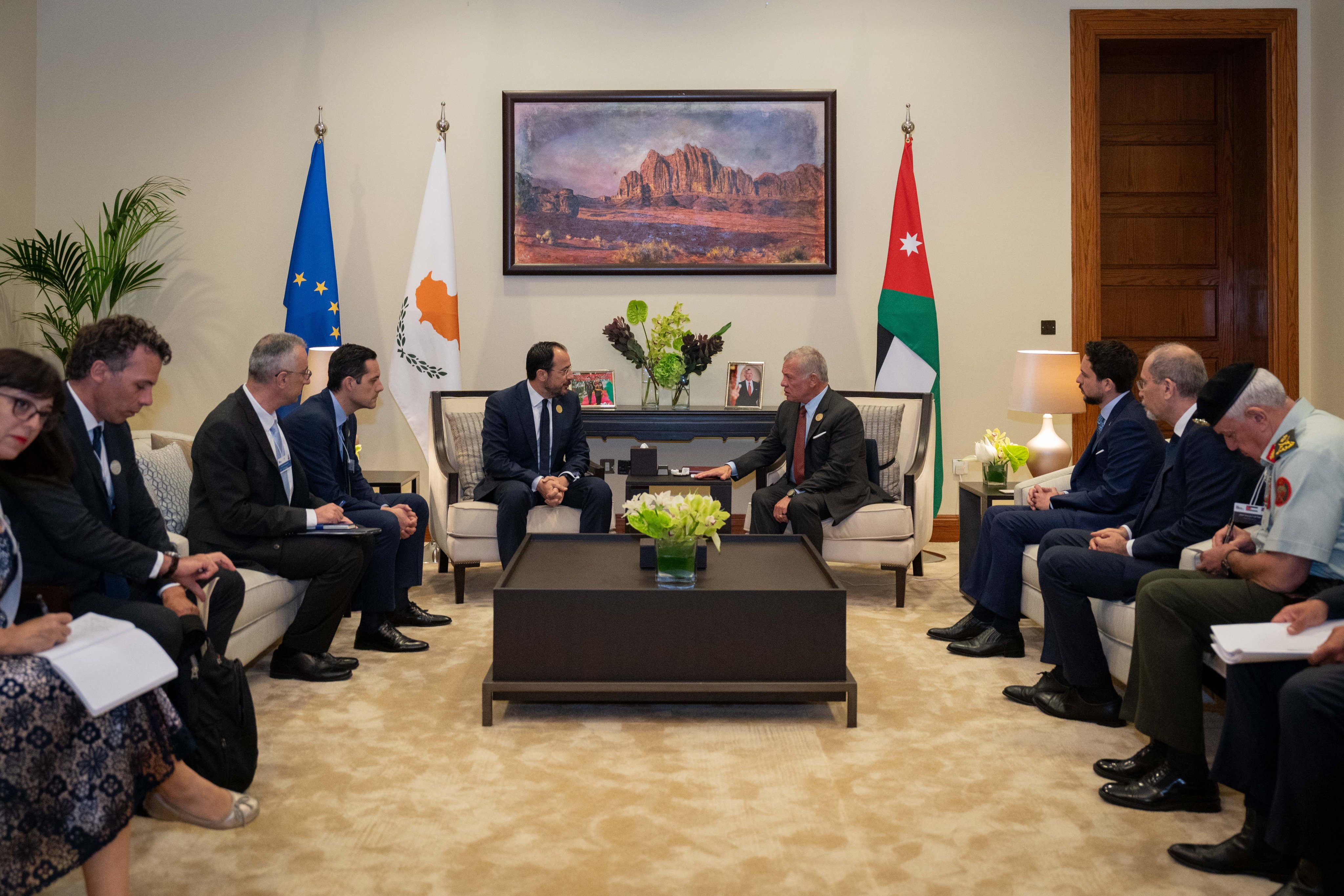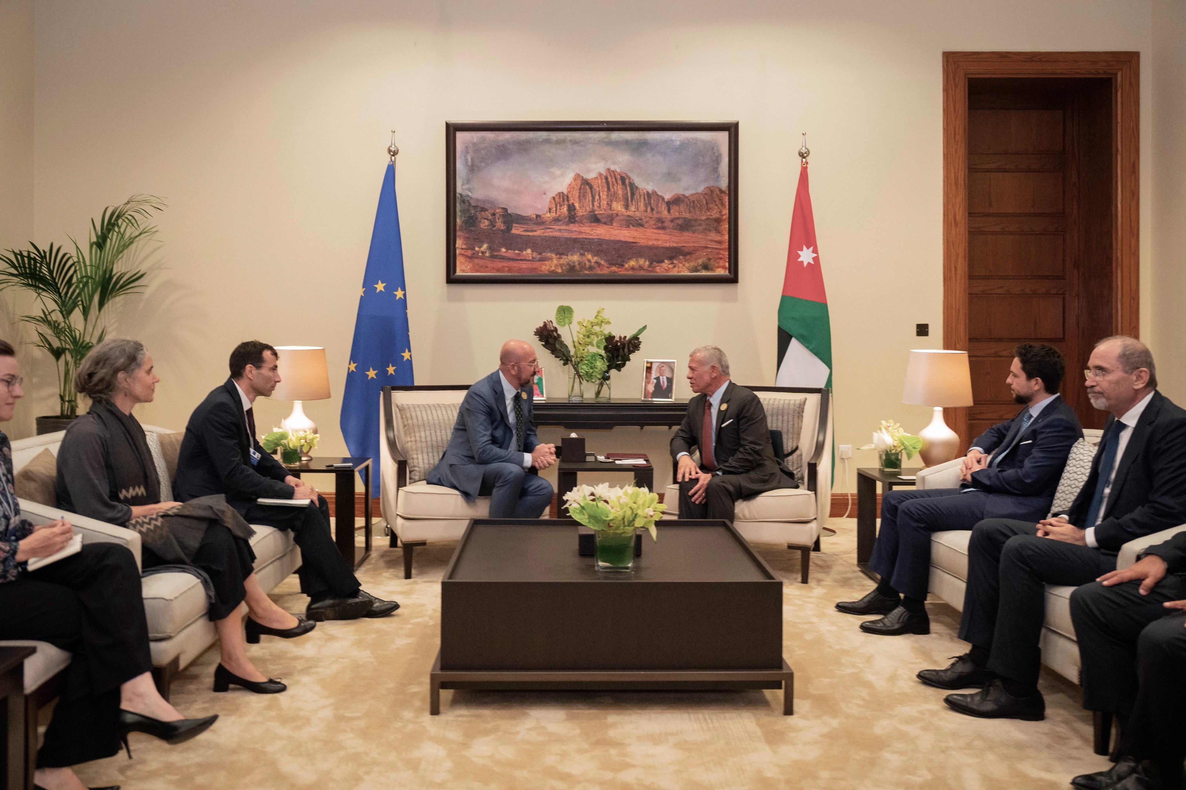Prime Minister Bisher Khasawneh, Deputy Prime Minister and Foreign Minister Ayman Safadi, Director of the Office of His Majesty Jafar Hassan, Chairman of the Joint Chiefs of Staff Maj. Gen. Yousef Hneiti, and General Intelligence Department Director Maj. Gen. Ahmad Husni attended the meetings.