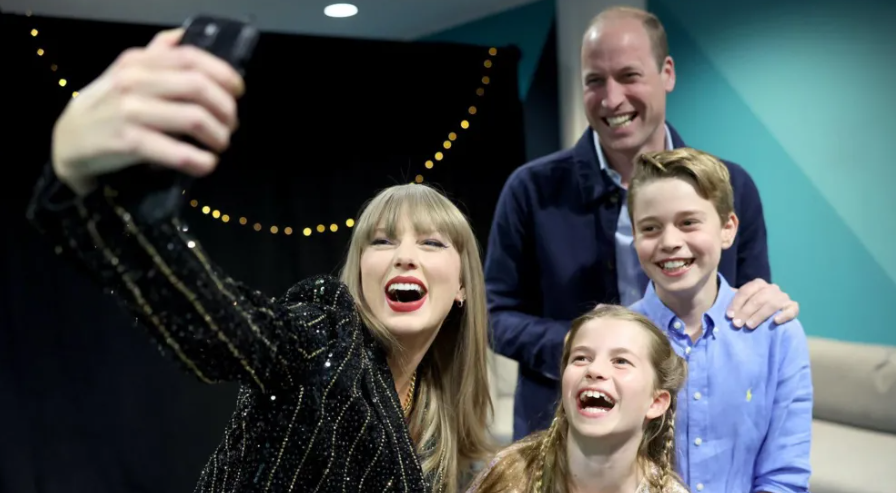 Ammon News - Taylor Swift grabbed a perfect royal selfie ahead of her Wembley gig - posing with the Prince of Wales, Prince George and Princess Charlotte.
