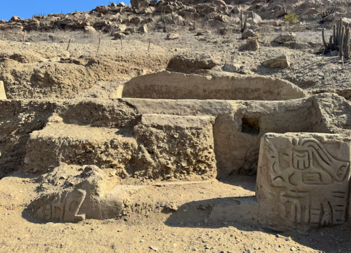 One of the temple walls sports a high-relief drawing of a mythological figure with a human body and a bird's head, a design which Muro said predates the pre-Hispanic Chavin culture which populated the central Peruvian coast for over half a millennia from around 900 BC.