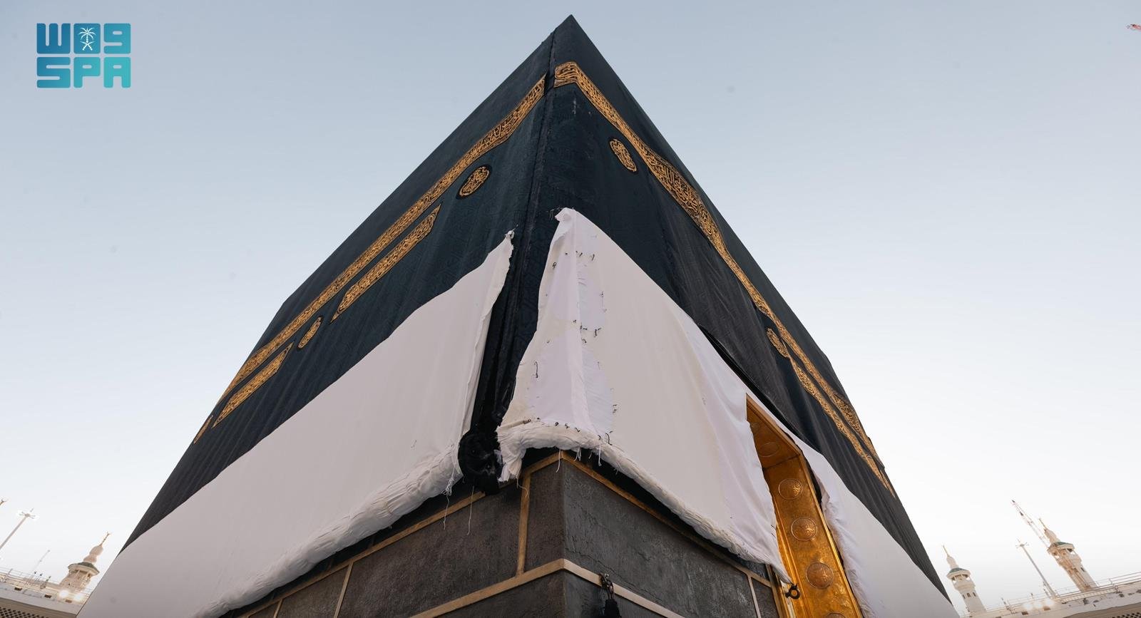 Ammon News - The General Authority for the Care of the Affairs of the Grand Mosque and the Prophet's Mosque adorned today the holy Kaaba with a new cover "Kiswa" as per the annual tradition.