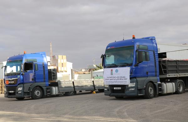 Ammon News - The Jordanian Armed Forces - Arab Army and the Jordan Hashemite Charitable Organization (JHCO) sent Thursday a new humanitarian aid convoy to the people in Gaza, in cooperation with the World Food Program (WFP) and with the support of the Palestine Children’s Relief Society, Doctors Without Borders, Muslims Around the World, and the Palestinian Medical Appeal.