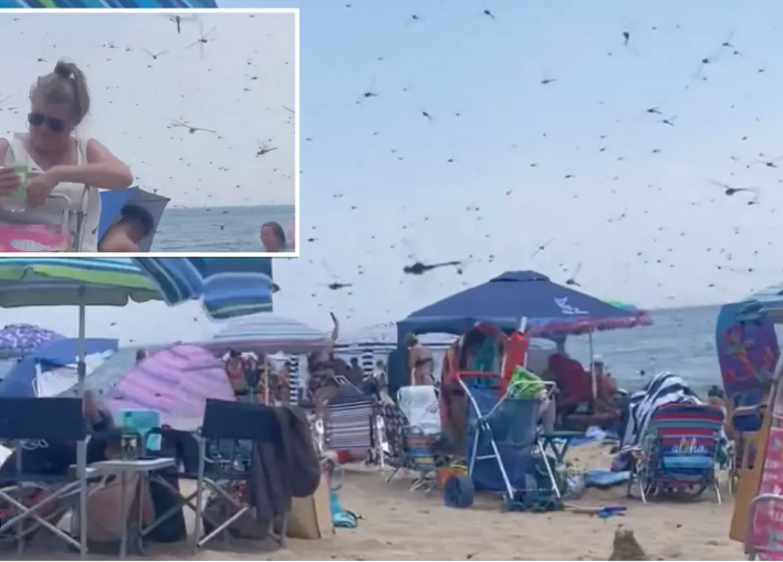 “I was enjoying a nice day at Misquamicut State Beach until we endured a dragonfly apocalypse,” witness Stephanie Martin told WCVB.