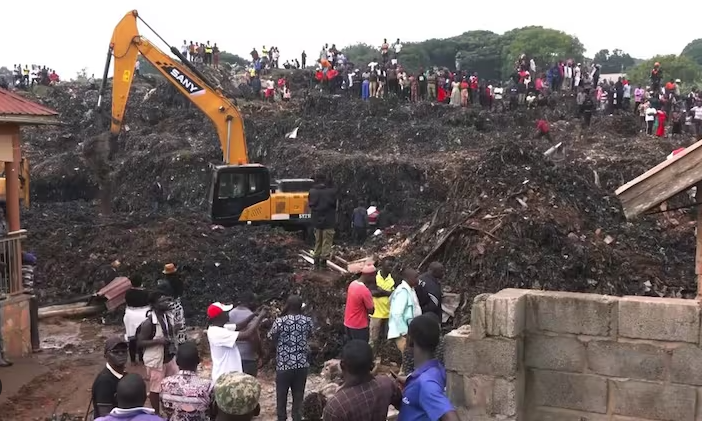 The collapse was believed to have been triggered by heavy rainfall. The precise details of what happened were unclear, but the city authority said there was a “structural failure in waste mass.”
