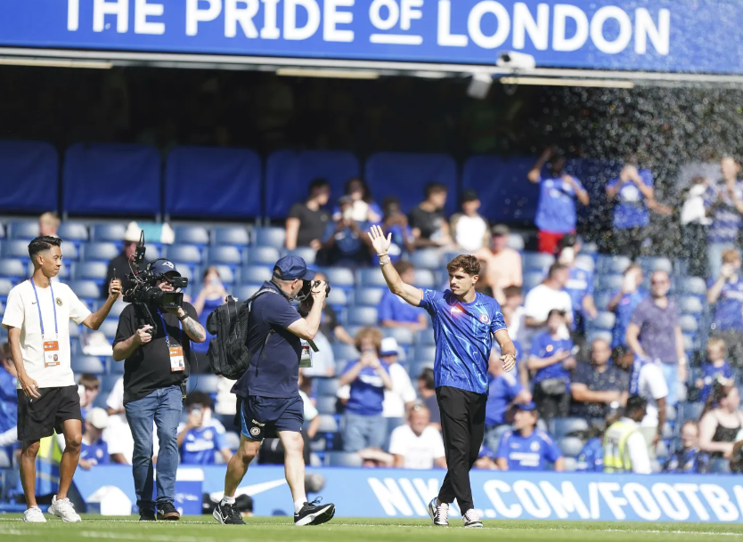 The 24-year-old winger was unveiled at Stamford Bridge at halftime of Chelsea’s final pre-season match against Inter Milan on Sunday.