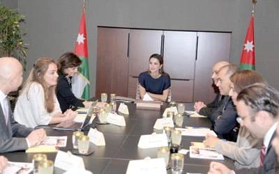 During the meeting, which was attended by HE Minister of Industry and Trade, Amer Al-Hadidi, and HE Minister of Social Development, Hala Latouf, Queen Rania emphasized the importance of drawing up new regulations to address different challenges faced by the microfinance institutions in Jordan, such as being registered under the Ministry of Social Development, rather than as non- profit organizations.