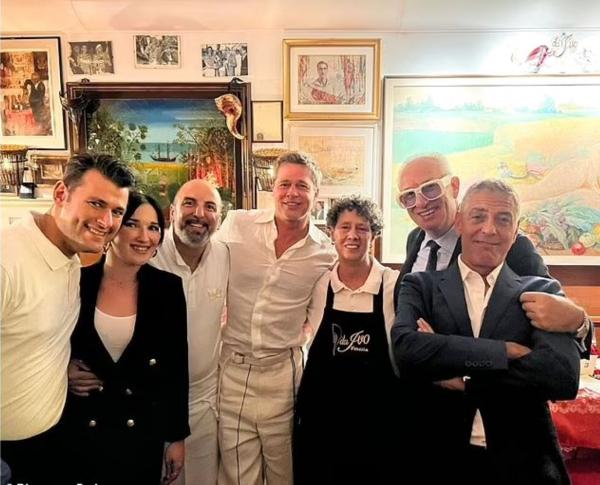 The Hollywood hearthrobs paid a visit to Ristorante Da Ivo in Venice with Amal, 46, and Brad's girlfriend Ines de Ramon, 34, on Saturday, a day before the red carpet premiere of their Apple TV+ film Wolfs.