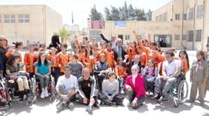 ***Paralympic gold medallist Baroness Tanni Carys Davina Grey-Thompson joins students participating in the King Abdullah II Award for Physical Fitness at the Umm Tufail School for Girls on Tuesday (Photo courtesy of the King Abdullah II Award for Physical Fitness