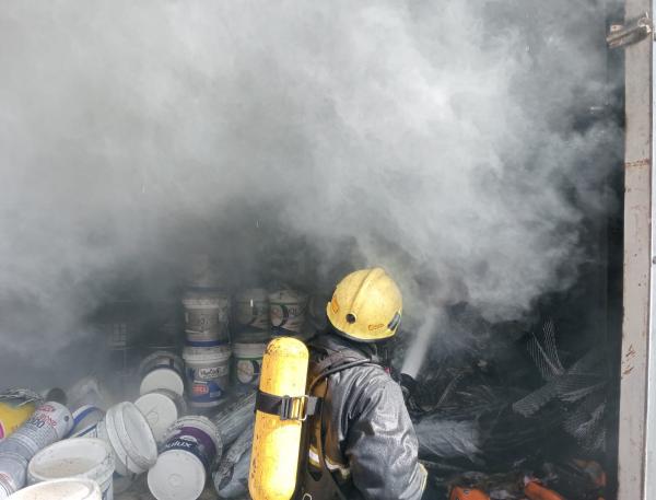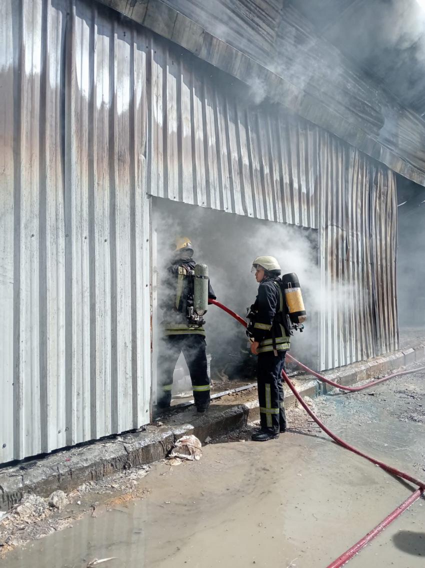 Ammon News - Specialized firefighting crews from the East Amman Defense Directorate, alongside police forces, managed a fire that broke out on Wednesday inside a store and an adjacent hangar containing building materials and petroleum products in the Juwaida area.