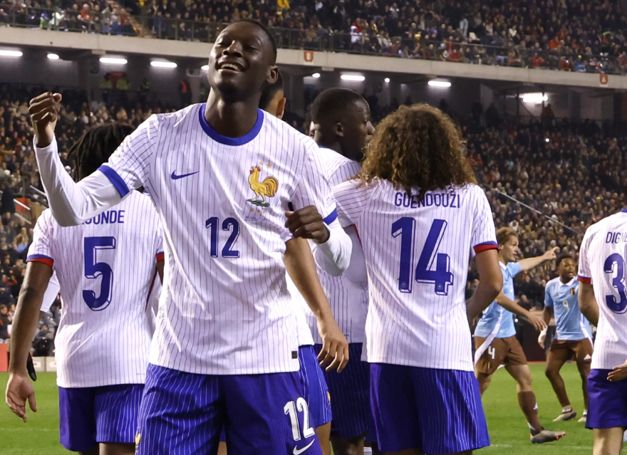 With Kylian Mbappé again absent, Randal Kolo Muani started up front for France and scored in each half in a 2-1 victory away to neighbor Belgium.