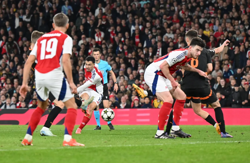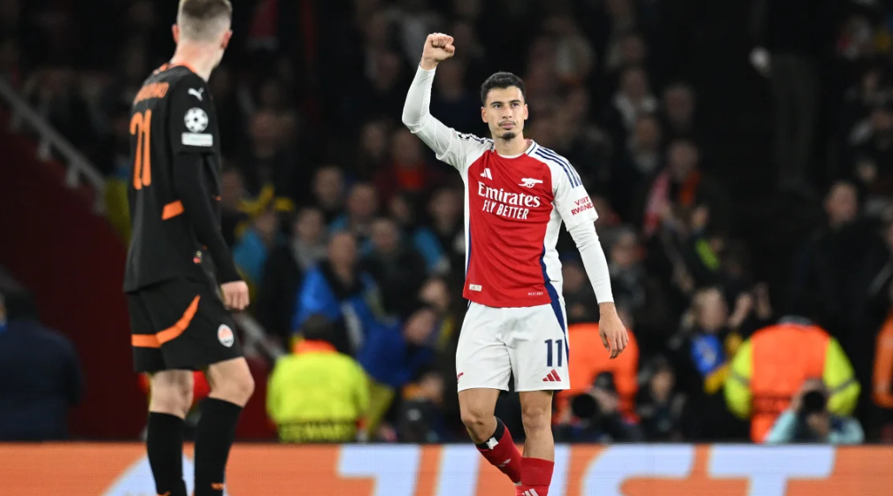 Dmytro Kryskiv missed an interception as Calafiori played the ball out, allowing Arsenal to penetrate Shakhtar's defense. Martinelli's shot hit the post, then rebounded off Riznyk for an own goal. Despite this, Martinelli was praised for his performance, including his impressive dribbling.