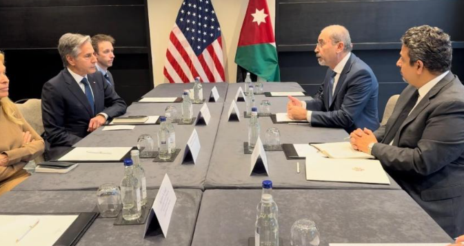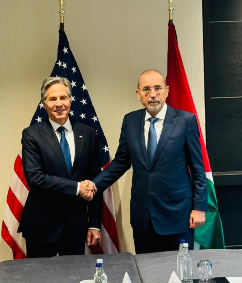 Ammon News - Deputy Prime Minister and Minister of Foreign Affairs and Expatriates Ayman Safadi met with US Secretary of State Anthony Blinken in London on Friday.