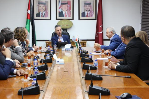 During the meeting at the Ministry of Industry, Trade and Supply today, Eng Qudah discussed with Senator Ahmed Al-Khudari, the Chairman of the Jordan Exporters Association, the association's board of directors, and its general manager about efforts to boost national exports and promote different export sectors for better global market access, which will enhance their performance, benefit the national economy, and create more job opportunities.