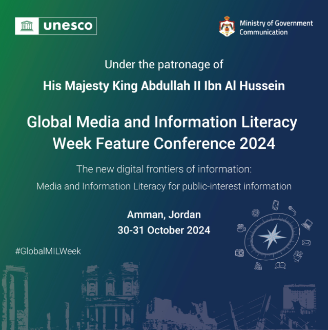 Ammon News - Under the patronage of His Majesty the King, the 13th Global Media and Information Literacy Week Feature Conference will commence tomorrow, Wednesday.