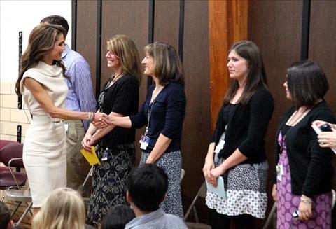Ammon News - CHICAGO - In line with Her Majesty's efforts to promote cross cultural understanding and bridge the divide between East and West, Queen Rania Al Abdullah visited the Highlands Elementary School in Chicago, where she read her recently written children's book, "The Sandwich Swap".
