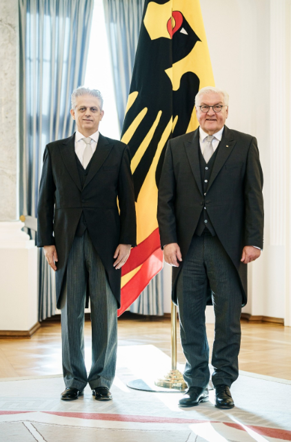 The credentialing ceremony was attended by German officials, including the Minister of State at the Ministry of Foreign Affairs, along with senior representatives from both the German government and the presidential office, underscoring the significance of the diplomatic exchange.