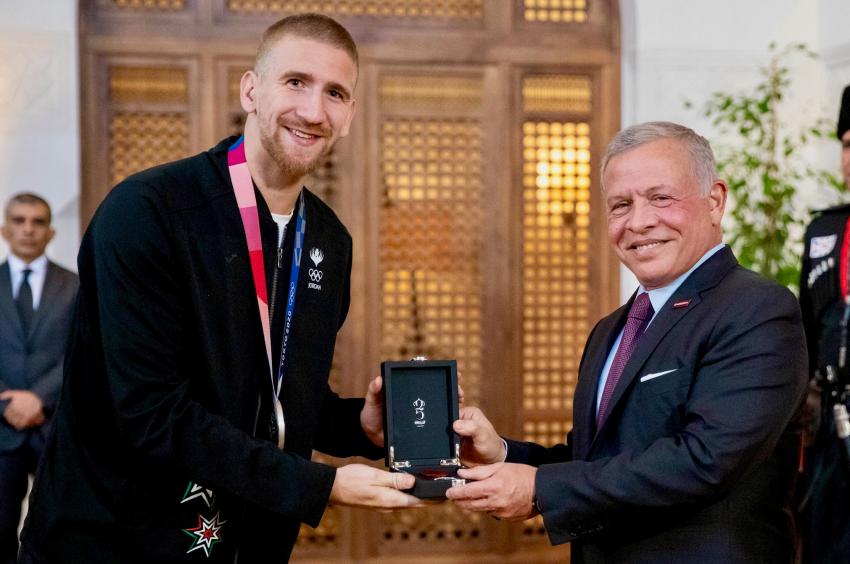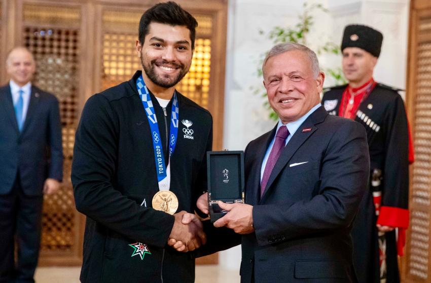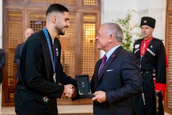 Ammon News - King Abdullah II welcomed the Jordanian athletes who achieved gold, silver, and bronze medals in the Paris 2024 and Tokyo 2020 Olympic and Paralympic Games at Al Husseiniya Palace on Sunday. The Silver Jubilee Medal was granted to them by His Majesty.