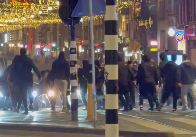 One video verified by Reuters showed a group of men running near Amsterdam central station, chasing and assaulting other men, as police sirens sounded.