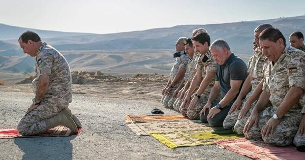 The King, dressed in military attire and joined by His Highness Prince Hussein bin Abdullah, the Crown Prince, proceeded to the Al-Ghamr regions in the south and Al-Baqoura in the north, where he performed two rak'ahs on the reclaimed Jordanian territory, asserting that operations in these areas would now be exclusively Jordanian.
