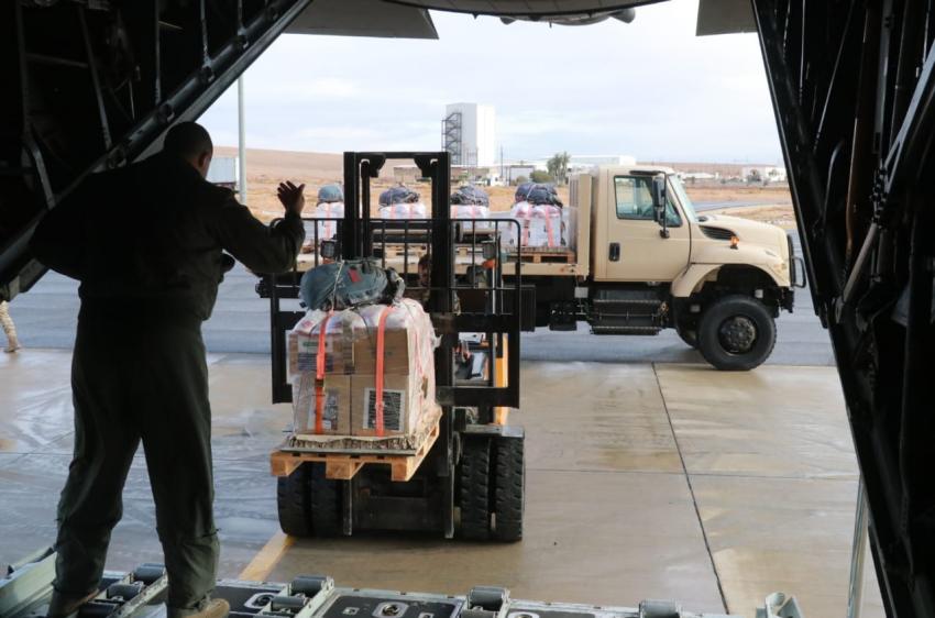 The JAF confirmed that they will continue to send humanitarian and medical aid via airdrops and the humanitarian air bridge to the Gaza Strip, which was carried out by Air Force helicopters about a week ago, in addition to land convoys in cooperation with the Jordan Hashemite Charity Organization (JHCO).