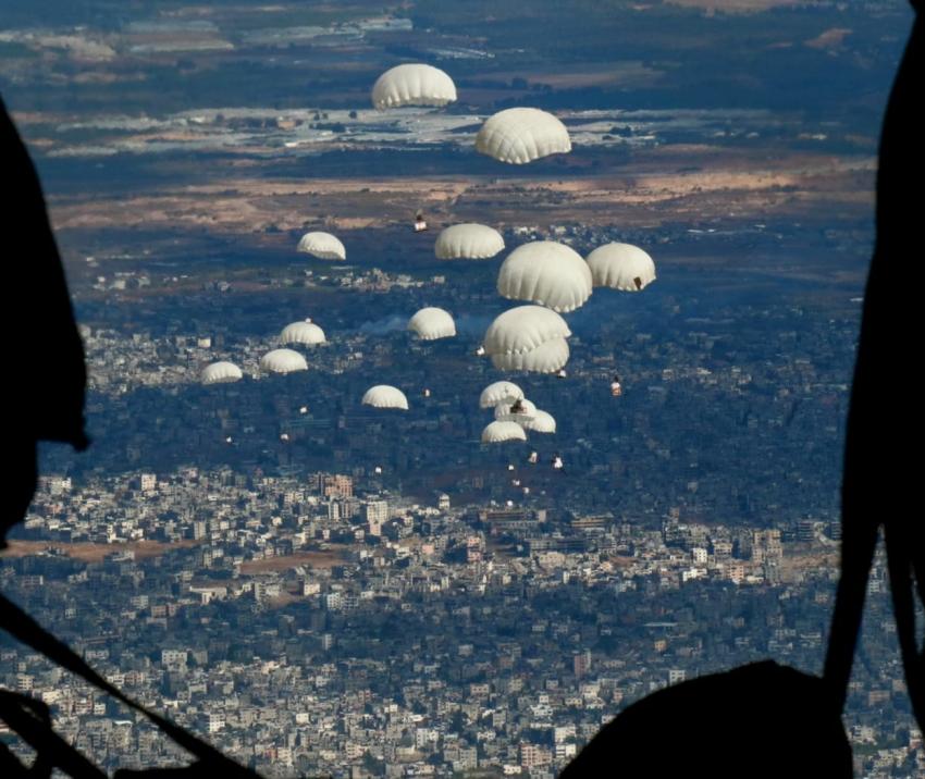 Ammon News - The Jordan Armed Forces (JAF) the Arab Army carried out a new airdrop of food aid to the northern Gaza Strip, using two C130 aircraft belonging to the Royal Jordanian Air Force.