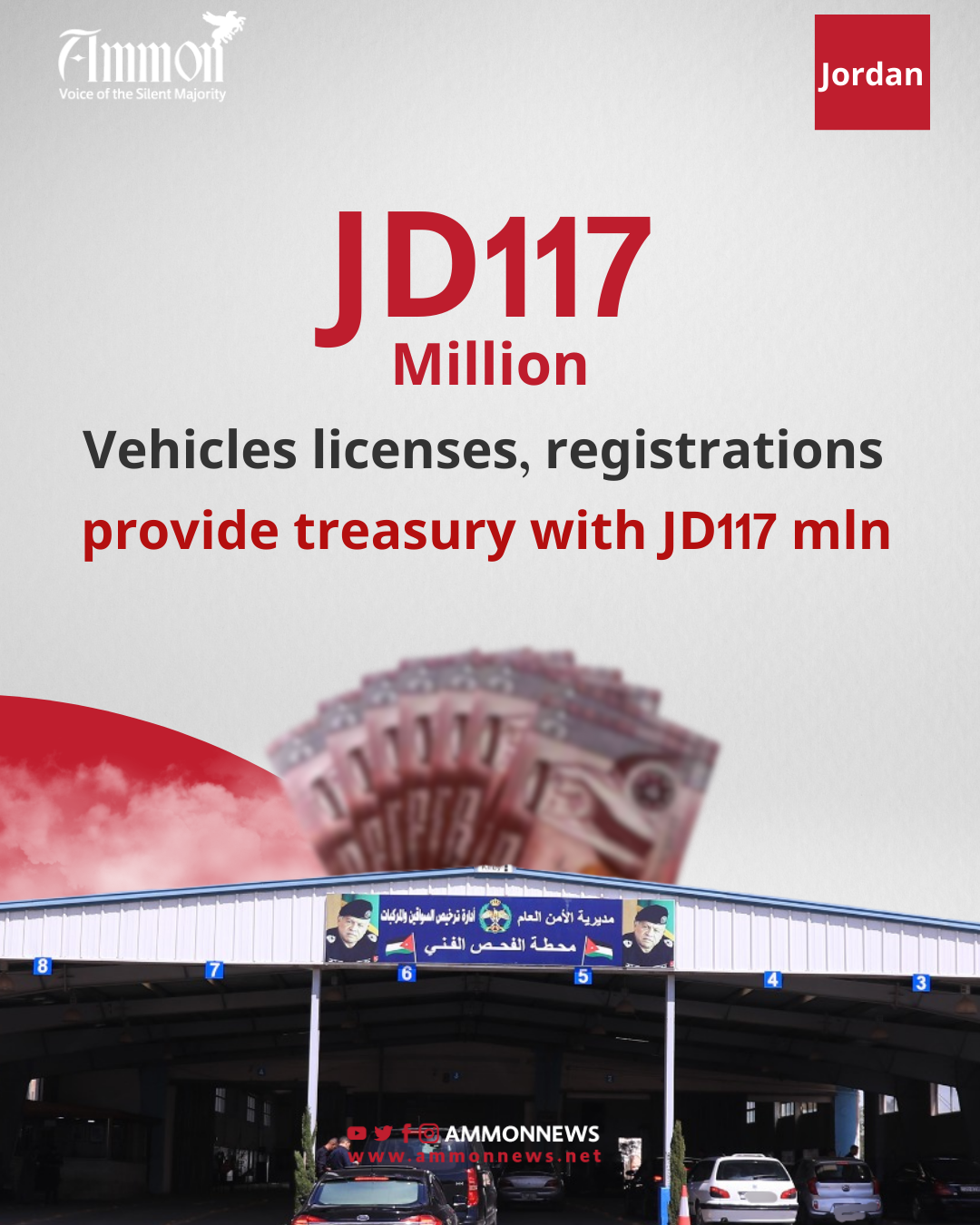 Ammon News- Ahmad Alhyari- The government's revenue from vehicle registration and driving licenses in 2023 amounted to JD117.35 million, compared to JD115.4 million in 2022, an increase of approximately 1.7%, according to the 2025 draft budget.