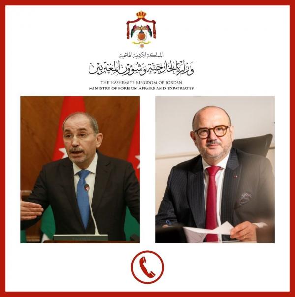 Ammon News - Deputy Prime Minister and Minister of Foreign and Expatriate Affairs Ayman Safadi called newly appointed Belgian Minister of Foreign Affairs, European Affairs, and Foreign Trade, Bernard Quintin to discuss prospects of cementing the longstanding Jordanian-Belgian relations, and regional developments.