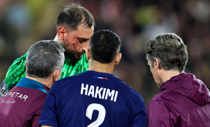 Donnarumma has "multiple cuts" on his face and will return to Paris with the team, PSG said in a statement.