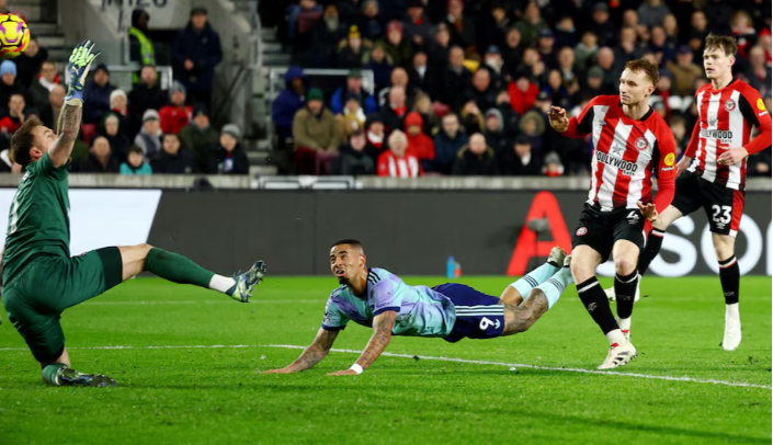 It proved a pivotal moment as less than a minute later Brentford were guilty of failing to clear the ball and it eventually arrived for Thomas Partey to fire a shot that was parried by Mark Flekken and Jesus dived to head in the rebound.
