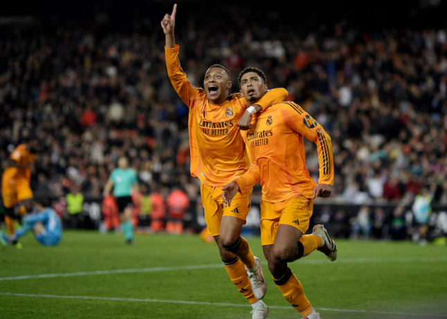 Real Madrid were a goal down with five minutes to go, but mounted another trademark comeback with Bellingham's winner arriving seven minutes into stoppage time as Real moved on to 43 points, two clear of second-placed Atletico Madrid, who have a game in hand.