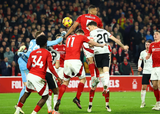 Ammon News - Liverpool substitute Diogo Jota's second-half header earned the visitors a battling 1-1 draw with surprise Premier League title rivals Nottingham Forest on Tuesday, keeping the leaders six points clear at the top of the standings.