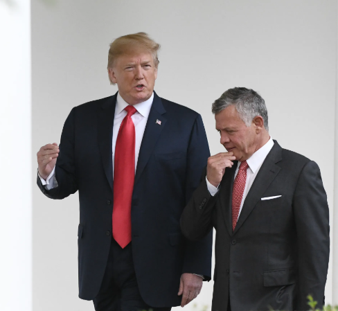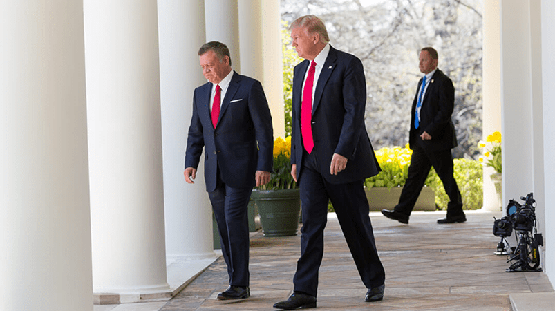 From archive/ His Majesty King Abdullah II speaks to President Donald Trump during a White House visit in June 2018