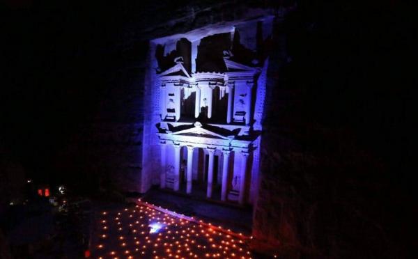Ammon News - In a special event, the Treasury in Petra was lit up in yellow and blue on Tuesday, coinciding with the launch of the promotional campaign for the Third World Disability Summit, which will be held in early April in Berlin.