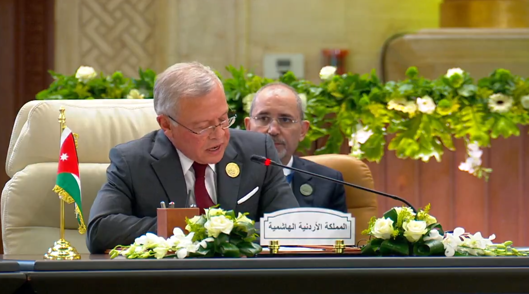 Delivering Jordan’s address at the Extraordinary Arab Summit hosted by Egypt, dubbed the ‘Palestine Summit,’ His Majesty reiterated Jordan’s total rejection of all attempts to displace Palestinians in the West Bank and Gaza and annex land, in addition to condemning the Israeli decision to block humanitarian aid to Gaza.